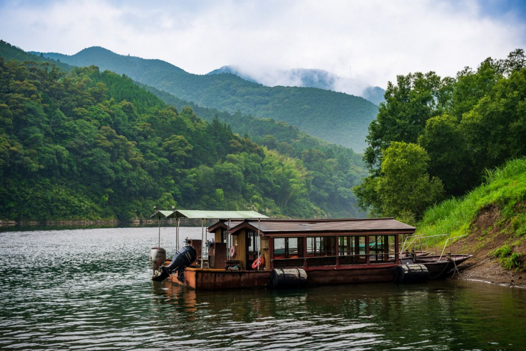 The river is peaceful along this cruise route and you can look down into the crystal clear water and see the river floor and occasional freshwater fish swimming below. Kochi’s young mountains rise along its banks; there are also green rice fields in the early summer that will eventually turn to shades of gold. Even the occasional summer rain shower isn’t a problem. The covered boat keeps you dry, and you can open the windows and hear the splashing of raindrops on the river’s surface while a cool breeze refreshes you.