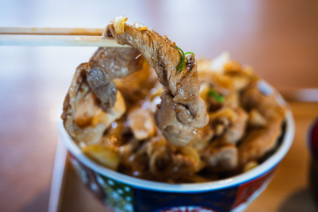 Current owner Norihisa Makino serves a mountain of a meal in his Roasted Garlic Pork Bowl with slightly sweet slices of braised pork piled high on a bowl of Niida rice. This huge meal is a godsend for hungry travelers on the nearby Ohenro Pilgrimage route (Temple #37, Iwamoto Temple, is just a few hundred meters away). The rest of us should skip breakfast before attempting to finish this enormous, delicious meal.