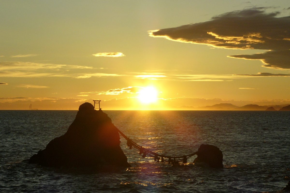 About a 15 minutes’ walk from Futaminoura Station. You should also definitely visit the Meoto Iwa rocks.