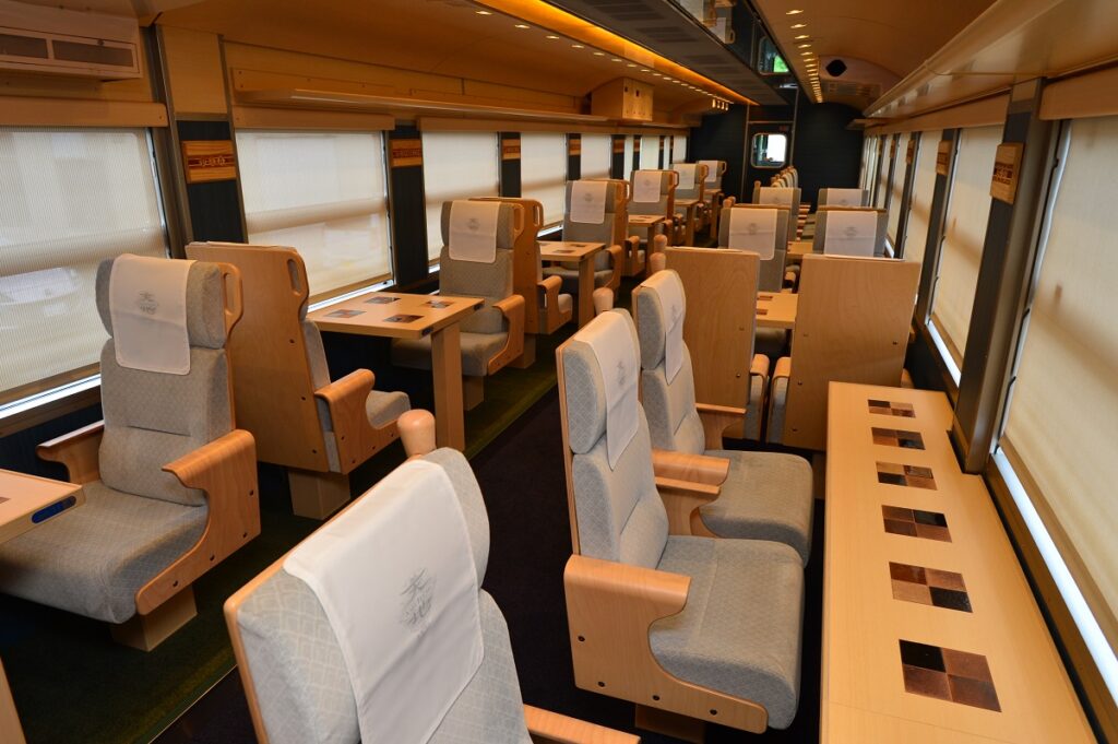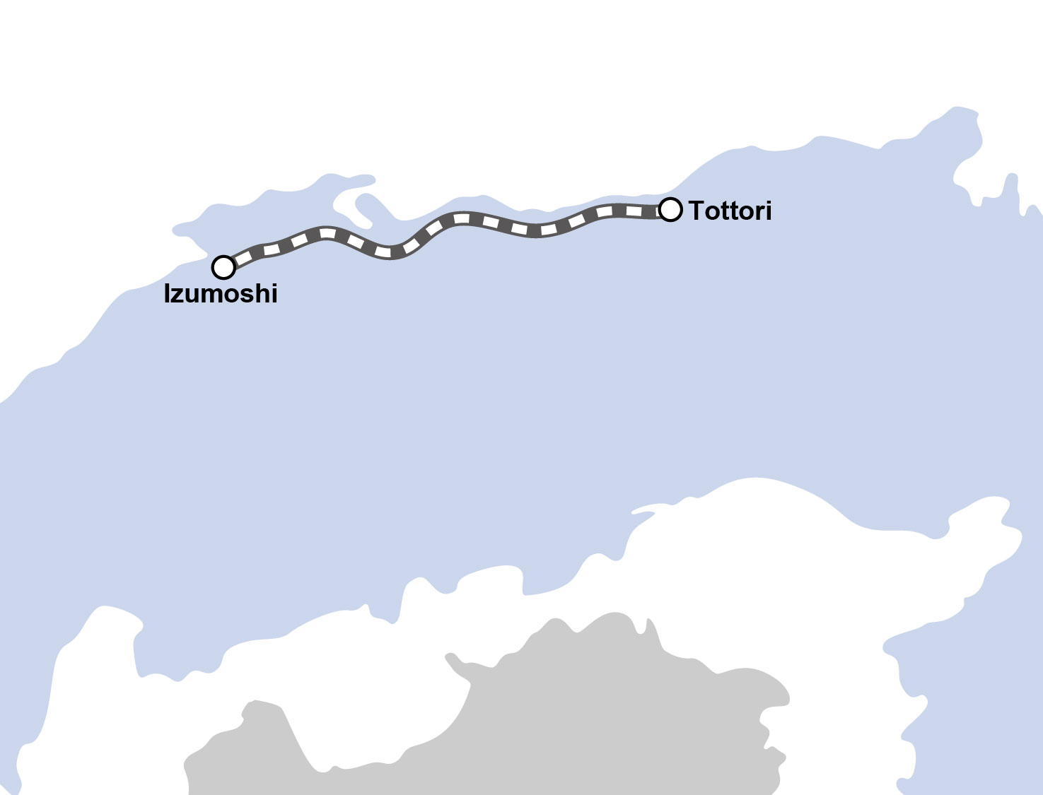 The train runs slower at the highlights of Mount Daisen, Lake Shinji-ko, the Hii-kawa River, and the Sea of Japan, allowing passengers to savor the beautiful and unique San’in scenery from the windows.