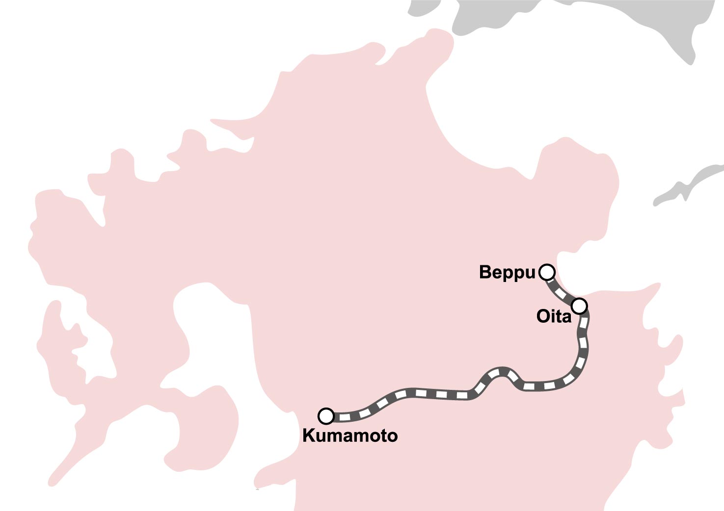 JR Kyushu’s D&S (Design & Story) train Aso Boy! links Beppu (Oita Prefecture), one of Japan’s best hot-spring towns, with Aso, where you can see the expanse of one of the largest calderas in the world.