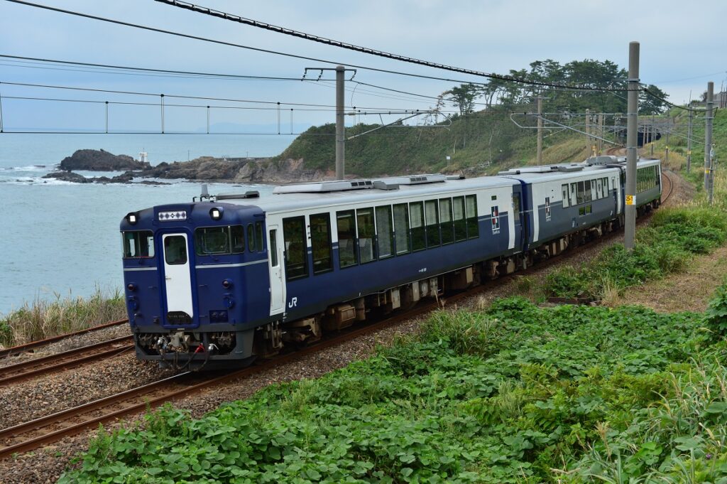 The color of the exterior features the deep blue of aishitaguro, formed with Japanese traditional indigo dyeing, with a white line that evokes snow and rice. In the observation train car, there are box seats for groups, pairs of viewing seats facing the big windows, and pairs of relaxing seats that allow comfortable sitting.