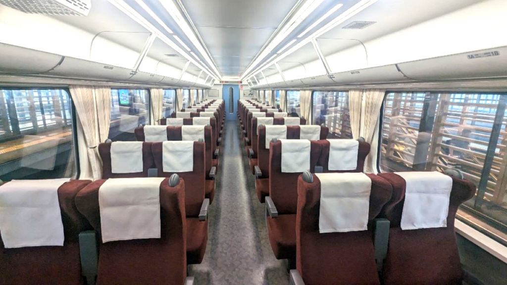 The train uses KiHa 283 series carriages. The reserved seats feature reclining seats with pillows that can be raised and lowered. The train also has a baggage storage area that anyone can use if it is available, so rest assured that you can store your large bags while riding.