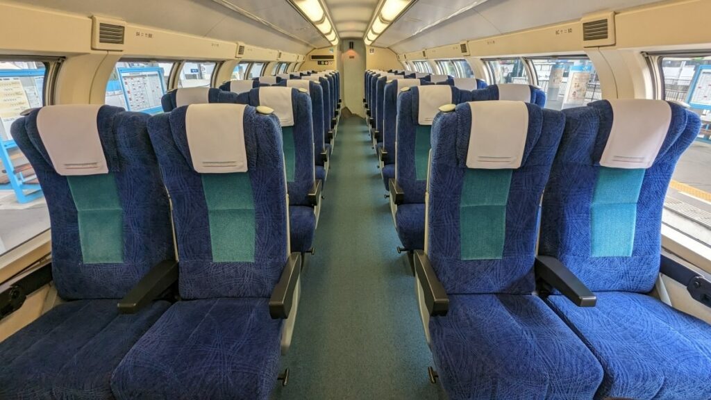 The lower floor of the two-story carriages has reserved regular seats that can be reclined so riders can relax during the journey, while the other carriages have unreserved seats which can be used just by having a boarding ticket.