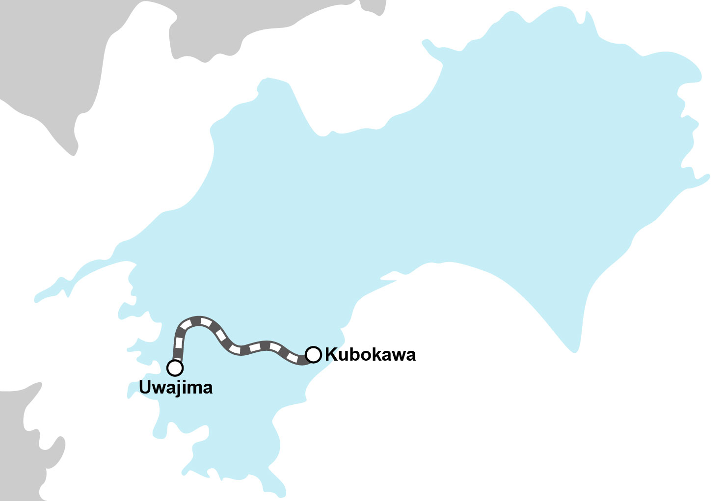 This train runs between Kubokawa Station in Kochi Prefecture and Uwajima Station in Ehime Prefecture, in western Shikoku. Up to six trains per day run up and down the Yodo Line, connecting the terminal stations in as fast as 2 hours and 5 minutes.